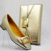 Cette chaussure talon bas s’accordera aussi bien avec une pochette qu’avec un sac à main.